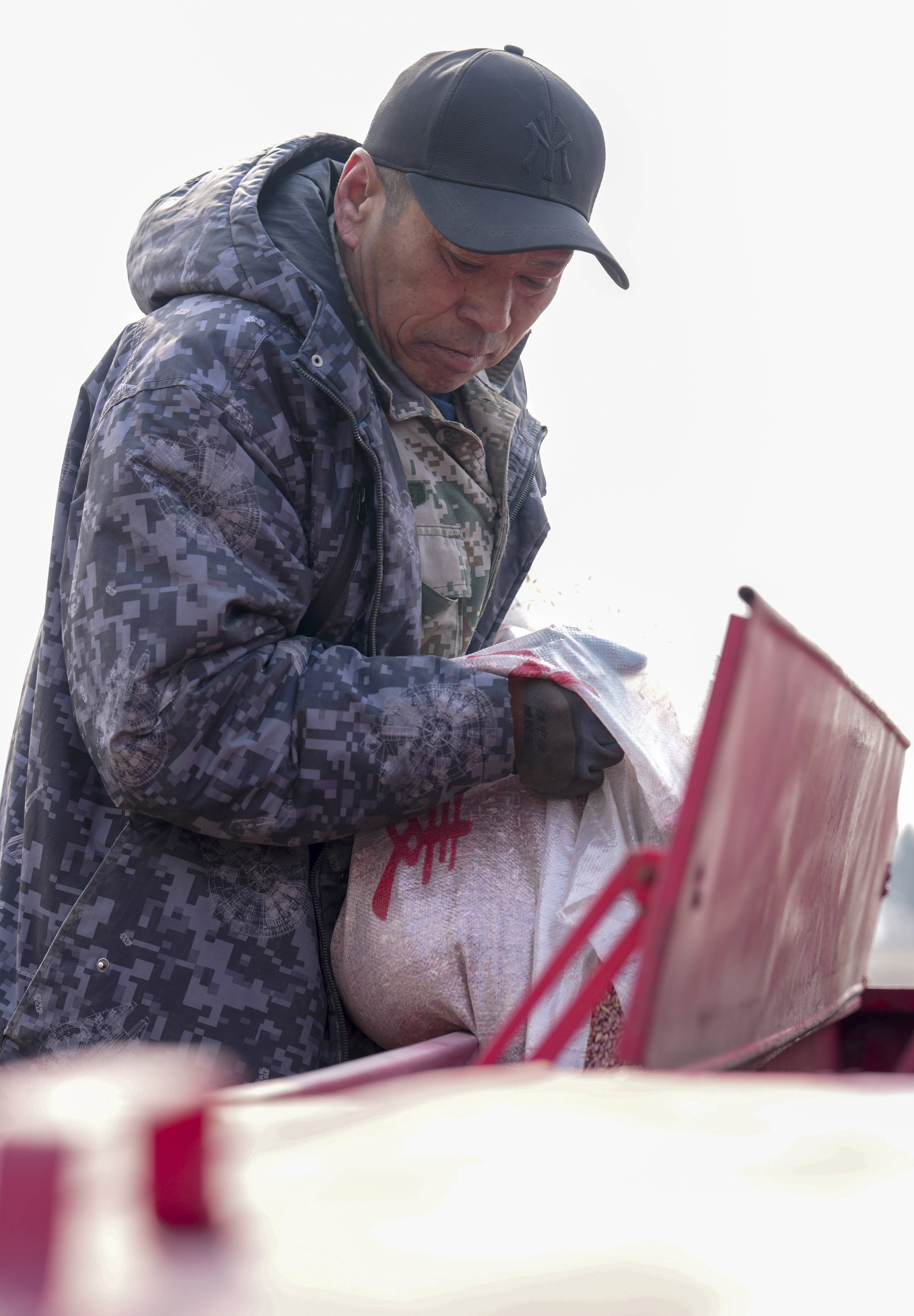3月25日,农(nong)户在位于黑(hei)龙(long)江省哈尔(er)滨市的北大荒集团闫家岗农(nong)场有限公司一处地(di)块将麦种加入(ru)播种机(ji)中。 新华社记者 王松 摄