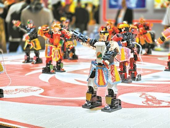 | 身披“战袍”、手持棒(bang)槌的(de)桌面小机器人踏着鼓点跳起英歌舞(资料图)羊城晚报记者 赵映(ying)光 摄 |