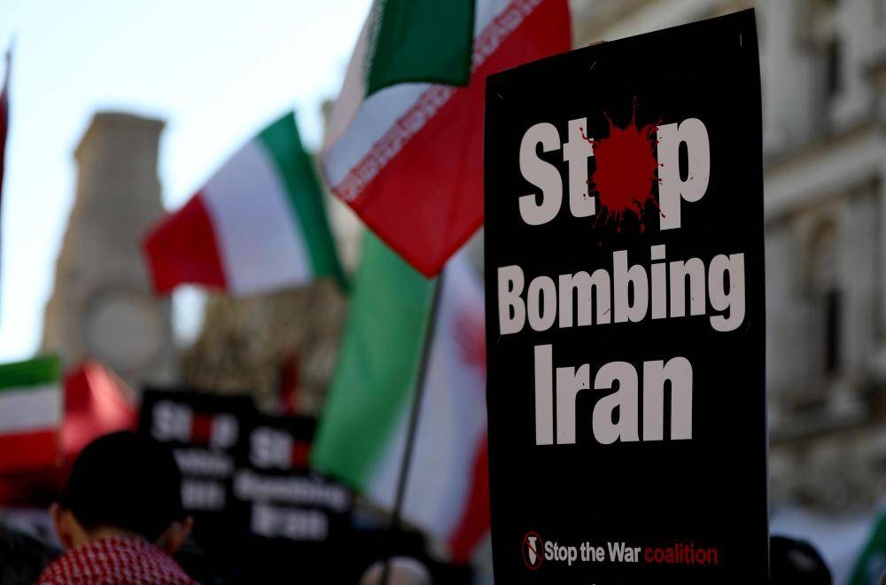 3月21日,人们在英国伦敦参加集(ji)会,抗(kang)议美国和以色列对伊朗发动军事打击。新华社(she)记者李颖摄