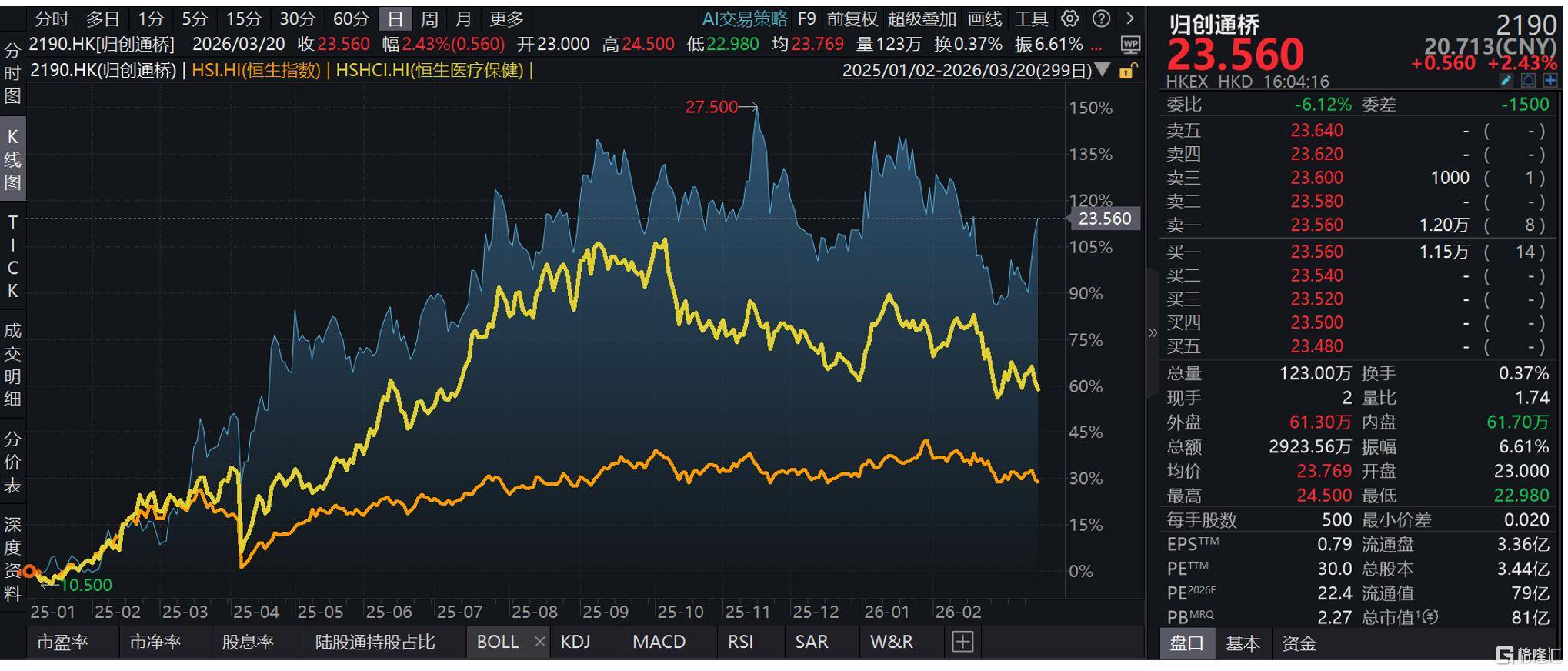 那么(me),谁在(zai)认真答题?资本市场率先用脚投(tou)票。作为港股18A中率先“摘B”的高值耗材(cai)企业之一,归创通桥自(zi)2025年初至(zhi)今,累计涨幅超100%,大幅跑赢恒生指(zhi)数与恒生医(yi)疗保健指(zhi)数。这一涨幅背后,是对公(gong)司在(zai)集采常态化背景下仍能完成高质量增长的预期兑现,也(ye)是市场对归创通桥未来“创新+国际化”双轮驱动逻(luo)辑的承认。
