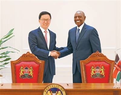 本报内罗毕3月25日电 (记者黄炜鑫)当地时(shi)间2026年3月22日至25日,应肯尼(ni)亚副总统(tong)金迪(di)基邀(yao)请(qing),国(guo)家(jia)副主席(xi)韩正访(fang)问肯尼(ni)亚,在内罗毕会见肯尼(ni)亚总统(tong)鲁托,同副总统(tong)金迪(di)基进(jin)行交流,出席(xi)肯尼(ni)亚享受零关(guan)税出口中国(guo)商品(pin)展(zhan)示会暨中国(guo)—肯尼(ni)亚商务论坛并(bing)致辞(ci)。