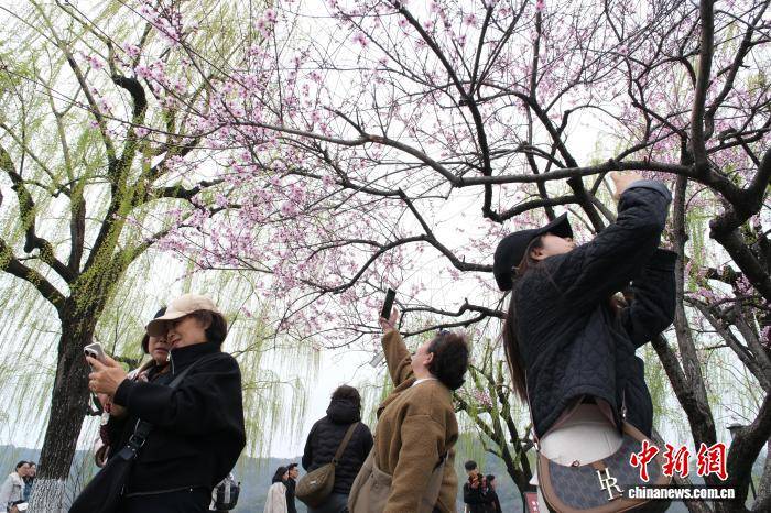 3月20日(ri),杭州西湖白堤桃花初绽、柳丝(si)新绿,吸收游客踏青赏花。曹丹 摄(she)