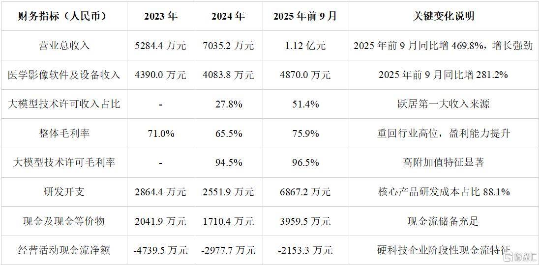 作为深(shen)耕医学影像(xiang)AI赛道九(jiu)年的硬科(ke)技(ji)企业,德适生物以自立(li)研发为焦点,商业化成果与财务表现持续爆发。据招(zhao)股书,2025年前(qian)9个月,公司营收同比暴跌469.8%,大模子技(ji)术许(xu)可(ke)业务毛利率(lu)高达96.5%,一跃成为第一大支出来源。本文经过阐明(ming)其技(ji)术壁垒、业务布局、行业机遇与潜正在风险,全(quan)面拆解这家医疗科(ke)技(ji)独角兽的底色。